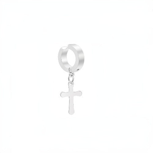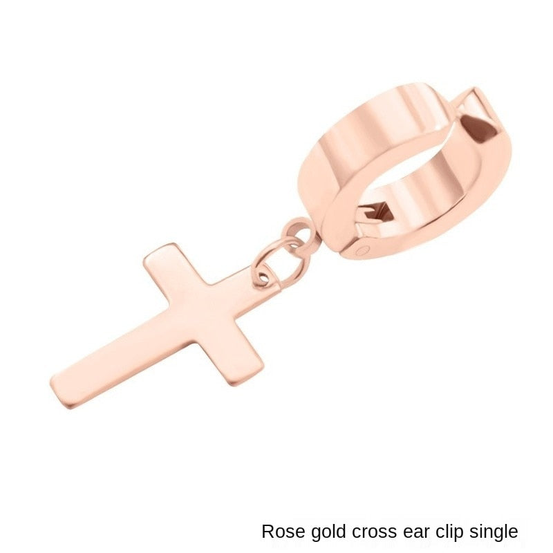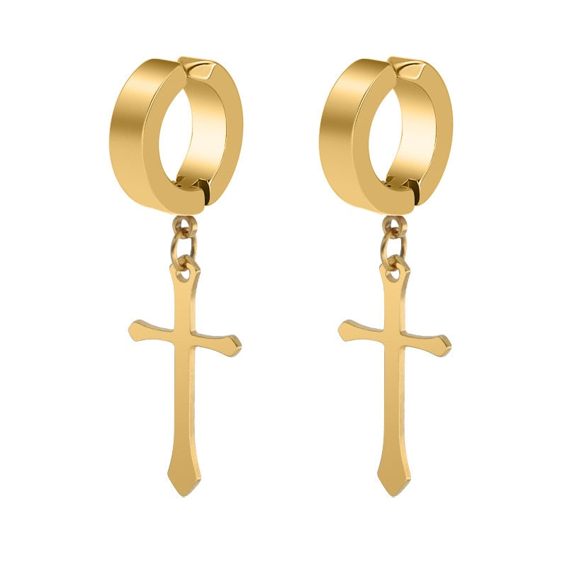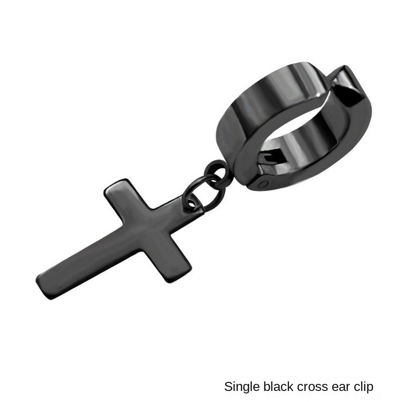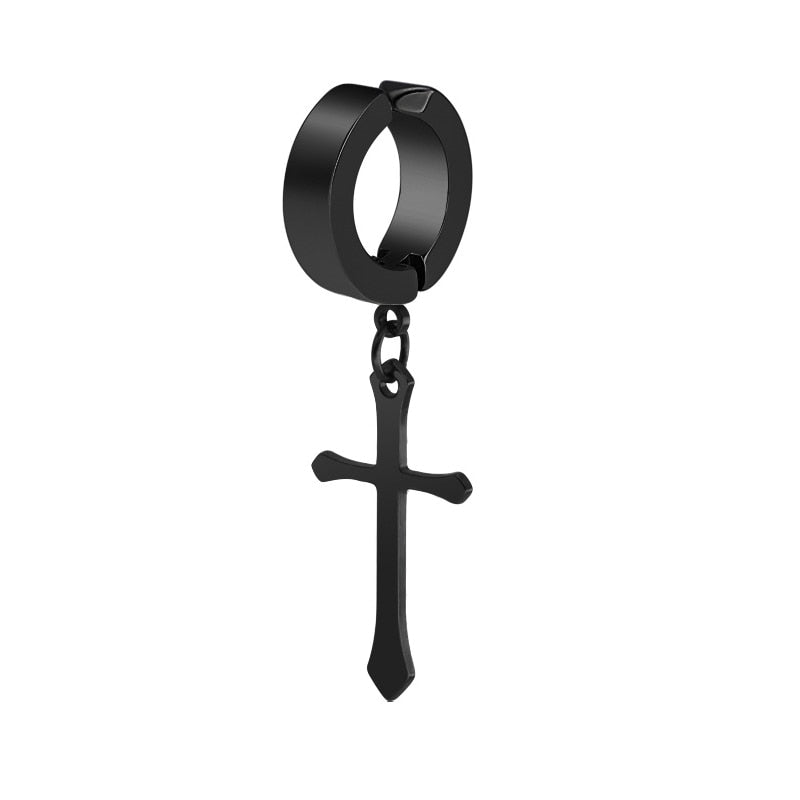 Stainless Steel 1 PC Clip On Non Piercing Earrings For Women Men Black Gold Color Cross Gothic Punk Rock Drop