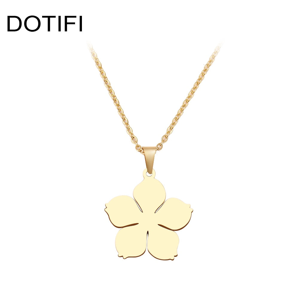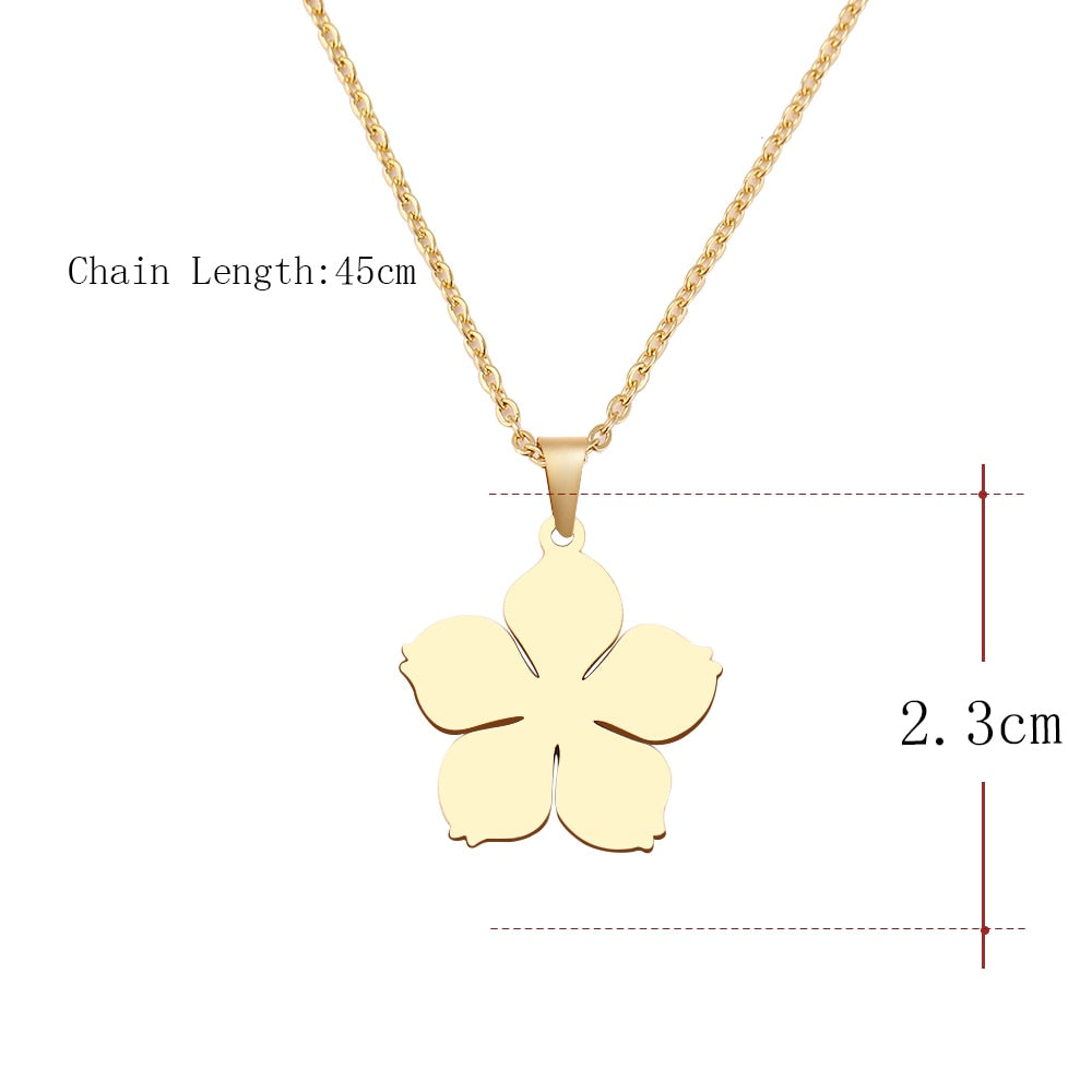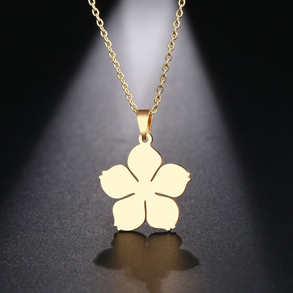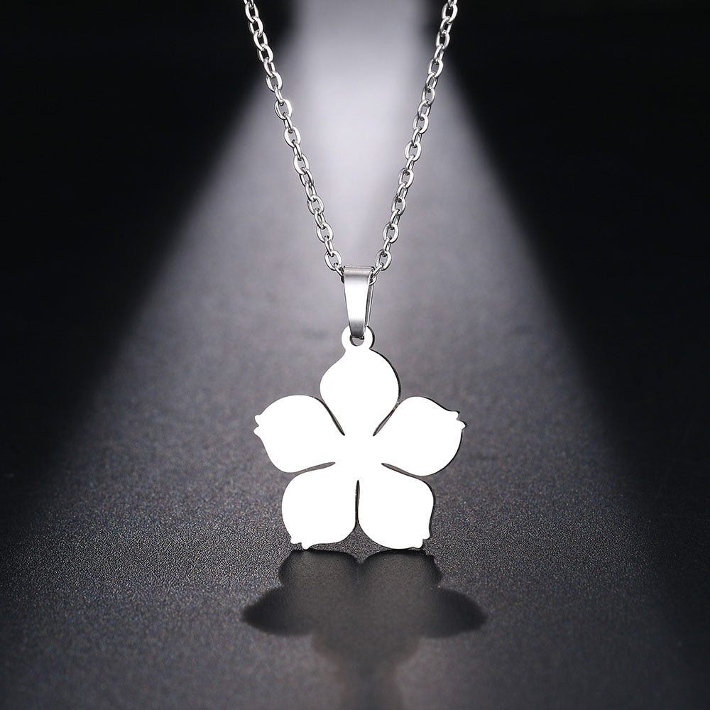 Stainless Steel Necklace For Women Man Blossom Flower Pendant Necklace Jewelry