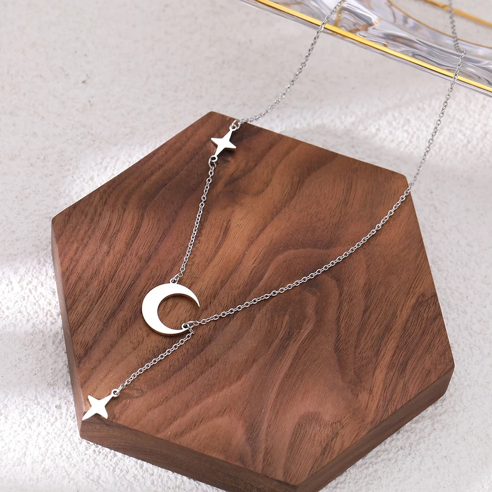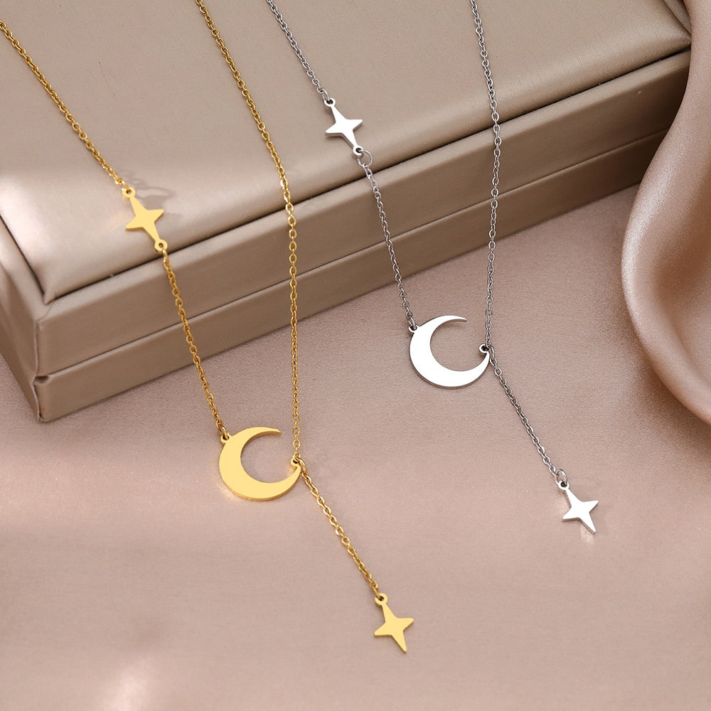Stainless Steel Necklaces Simple Delicate Moon North Star Pendants Choker Fashion Necklace Jewelry