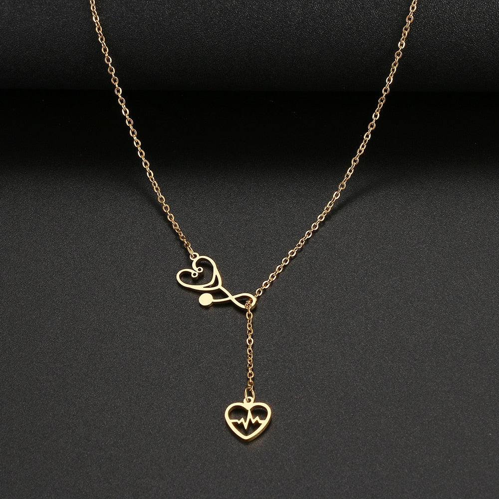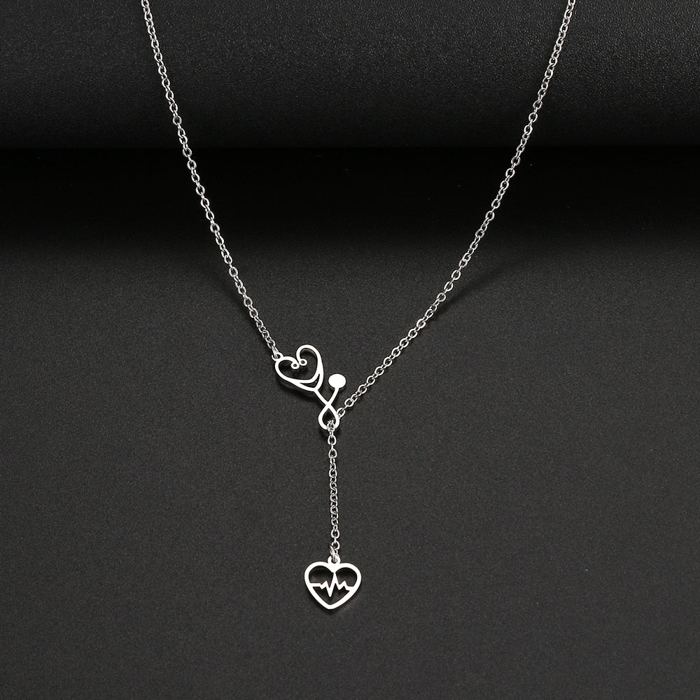 Stainless Steel Necklaces Stethoscope Electrocardiogram Pendant Collar Chain Fashion Necklace For Woman Jewelry